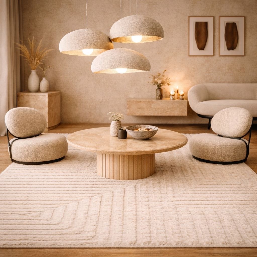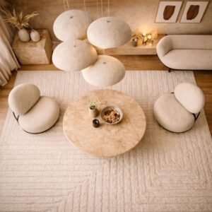 The soft, creamy ivory palette is designed to harmonize with neutral interiors, providing a warm, tactile foundation for minimalist, Scandi, or Japandi inspired rooms. Whether paired with sleek stone tables or plush boucle seating, its dense fibers offer a luxurious underfoot experience that is as durable as it is beautiful.