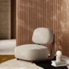 The Élan Lounge Chair is a bold fusion of organic form and refined craftsmanship. Its voluminous, stone inspired upholstery creates a soft, sculptural silhouette, while the solid walnut arms carve a striking architectural contrast. Designed as both a seating piece and an art object, Élan brings calm strength and tactile luxury into any space.