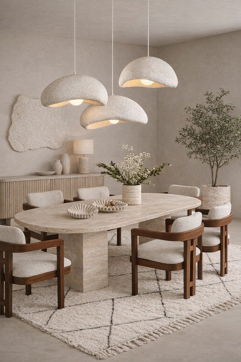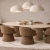 Elevate your dining space with timeless luxury and sculptural design. This curated set combines natural travertine, rich wood accents, and modern craftsmanship to create a statement centerpiece for your home.