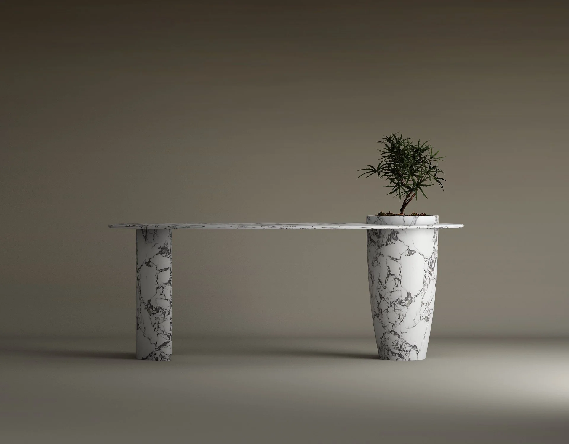 • Integrated Planter: A signature feature of the conical pedestal is an integrated stone basin, designed to bring life and organic tranquility to your primary work surface.