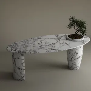 • Dual-Geometry Base: The desk is supported by two distinct marble pillars—one a sharp, architectural slab and the other a tapered, hand-turned conical pedestal.