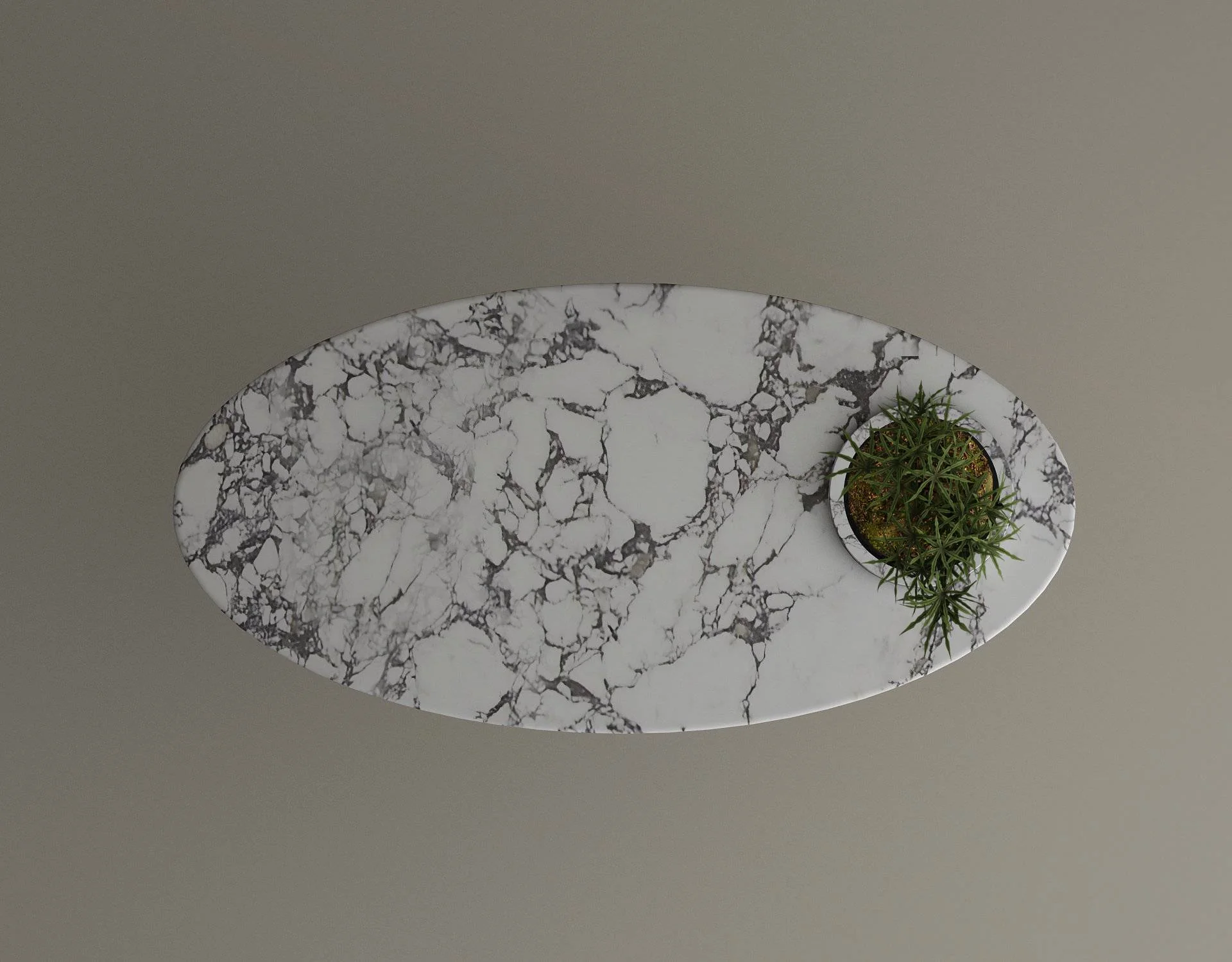 • Elliptical Marble Top: The expansive, oval-shaped surface is meticulously honed to a silky matte finish, showcasing a continuous flow of charcoal and smoke-toned veining.