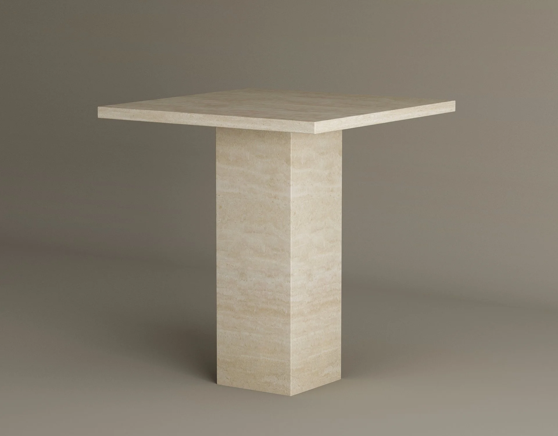 Introduce a touch of architectural antiquity to your home with the Roman Pedestal Side Table. This piece is masterfully carved from solid, premium travertine, featuring a thick slab square top that rests upon a substantial, monolithic block base. Its heavy, grounded presence and luminous sandy beige palette make it an essential anchor for high end interiors that prioritize organic materiality and minimalist form.