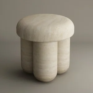 Enhance your sleeping sanctuary with the Greece Moon Travertine Nightstand, a sculptural masterwork that balances ancient architectural motifs with a sleek, contemporary silhouette. This piece is meticulously carved from solid, high grade travertine, showcasing a warm, sandy palette and characteristic organic pits that make every nightstand a unique geological treasure. Its design features a substantial triple cylindrical monolithic base, creating an atmosphere of quiet power and grounded permanence right at your bedside.