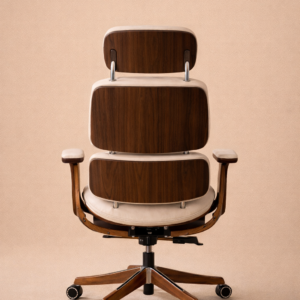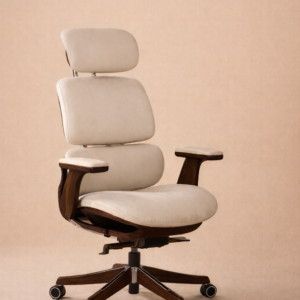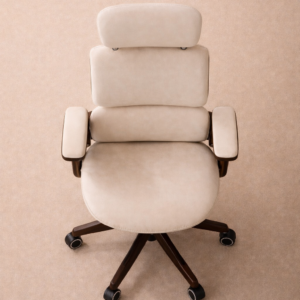 The Sella Imperium Chair blends timeless craftsmanship with modern ergonomic design. Wrapped in soft cream upholstery and supported by sculpted dark walnut arms and base, it brings a sense of warmth and sophistication to any workspace. Its balanced proportions, adjustable headrest, and smooth rolling base make it both visually striking and exceptionally comfortable for long hours of work. Designed to complement luxurious interiors, the chair pairs beautifully with travertine desks, walnut shelving, and refined office spaces.