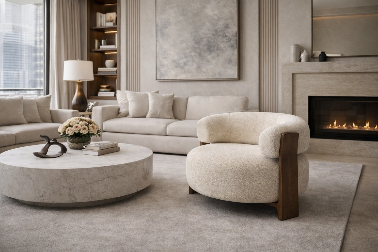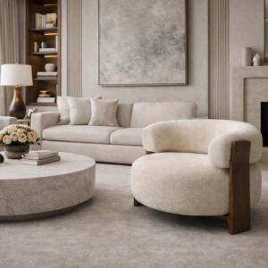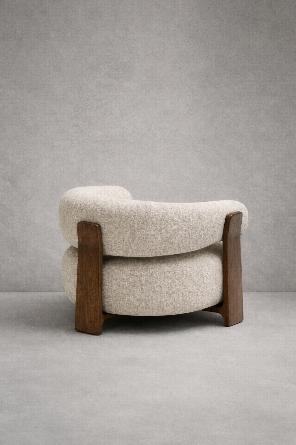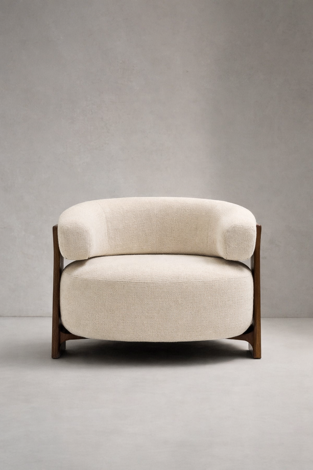 Sella Solaris embodies serene luxury an elegant fusion of sculptural form and soft minimalism. Wrapped in premium ivory boucle, its curved silhouette invites gentle relaxation, while the cylindrical backrest adds a bold yet harmonious architectural presence.