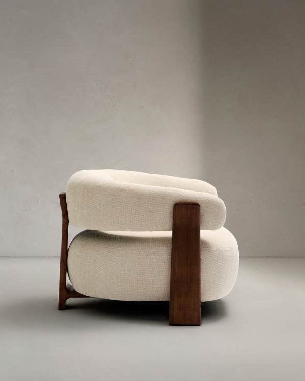 - Sculptural curved silhouette with a distinctive cylindrical backrest