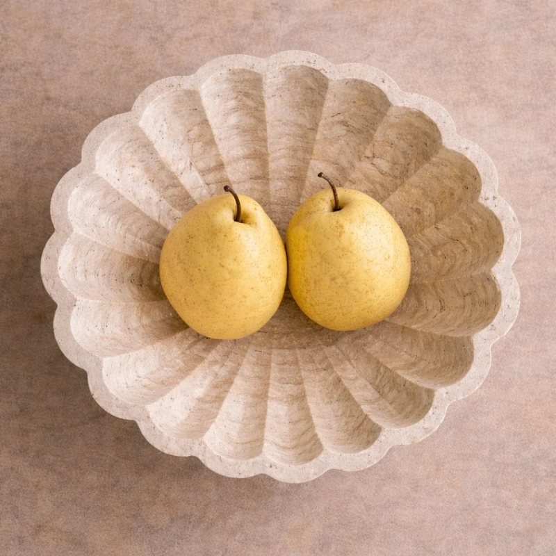 Transform your dining or living space with the Scalloped Travertine Artisan Centerpiece Bowl, a stunning marriage of classical architecture and organic natural beauty. This piece is meticulously carved from a single block of high grade, porous travertine, showcasing the intricate geological veins and warm, earthy pits that make every bowl a unique work of art. The undulating scalloped edge provides a rhythmic, soft to the touch aesthetic that balances the raw strength of the stone, creating a sophisticated focal point for a marble island or a minimalist coffee table. Whether holding seasonal fruit or standing alone as a sculptural statement, it brings an atmosphere of sun drenched Mediterranean luxury and quiet, grounded permanence to the intentional home.