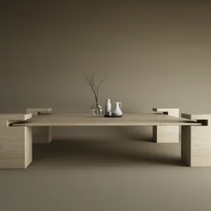 The Imperial Travertine Block Coffee Table is a masterpiece of architectural minimalism, handcrafted from premium natural travertine. Its bold block leg structure and perfectly balanced slab top create a powerful yet refined presence. Designed to anchor luxury living spaces, this table showcases soft beige veining, sculptural symmetry, and a timeless monolithic silhouette. A true statement piece for interiors that demand elegance, exclusivity, and craftsmanship.
