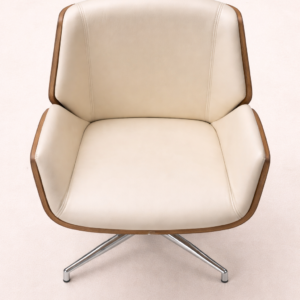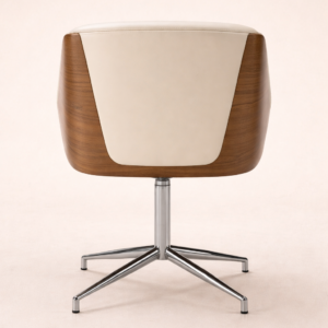 The Linea Executive Chair is a refined blend of sculptural design and modern comfort. Crafted with a curved walnut shell and upholstered in smooth cream leather, the chair offers a balanced combination of warmth and elegance. Its flowing silhouette embraces the body, while the polished metal swivel base provides stability and effortless movement. Designed for contemporary interiors, dining spaces, and sophisticated offices, the Linea chair highlights natural materials and minimalist luxury.
