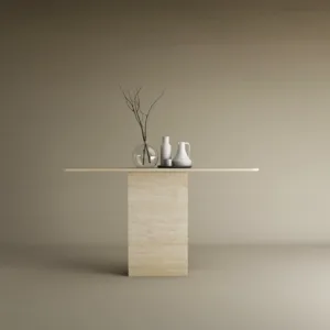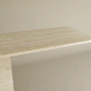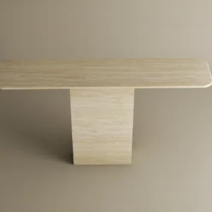 The Verona Sculpted Travertine Console embodies refined minimalism with architectural presence. Expertly handcrafted from solid natural travertine, it features a monolithic pedestal base supporting a sleek floating top, creating a perfectly balanced silhouette. The soft beige veining, polished stone surface, and timeless geometric lines make it a statement entryway or living room piece. Paired beautifully with a round mirror, it transforms any interior into a serene, luxury space.