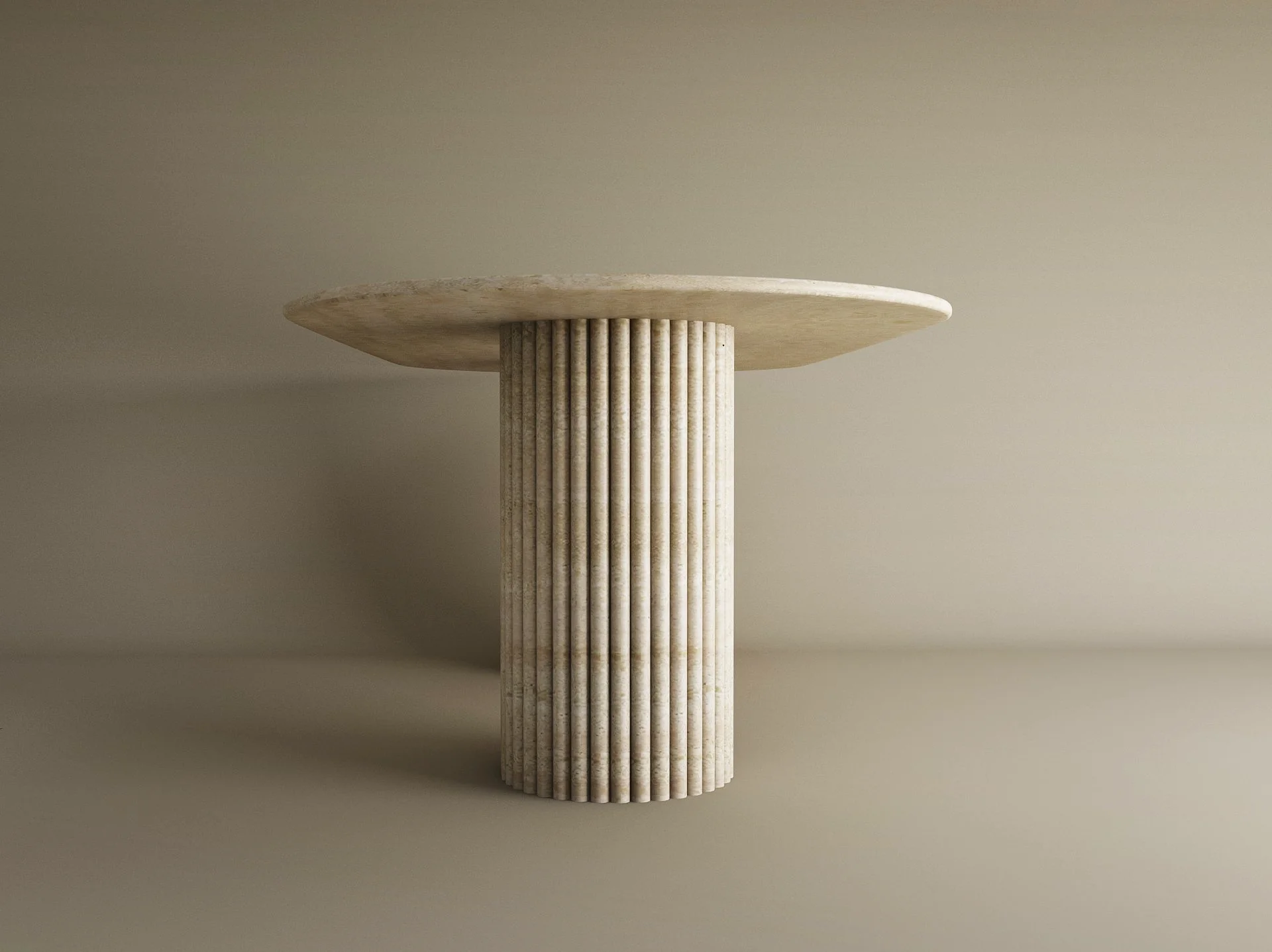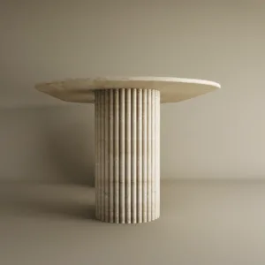 • Materiality: Crafted from solid travertine, known for its timeless durability and distinctive, porous character that ensures no two pieces are identical.
