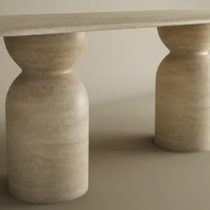 Step away from traditional geometry and embrace the fluid elegance of the Lotus Petal Travertine Coffee Table. This avant garde piece features a series of interlocking, hand carved stone petals that form a sculptural base, supporting a thick, organic edged top. Crafted from premium Roman Travertine, it captures a sense of blooming movement, making it a “functional sculpture” that feels alive in the light.