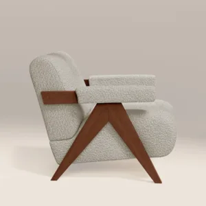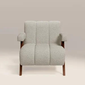 • Ribbed Bouclé Comfort: Features high-density ivory bouclé with vertical ribbing, offering a soft, tactile counterpoint to the solid wood frame.