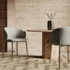 • Material Contrast: The deep, dark tones of the walnut legs create a luxurious visual dialogue with the bright, textured upholstery.